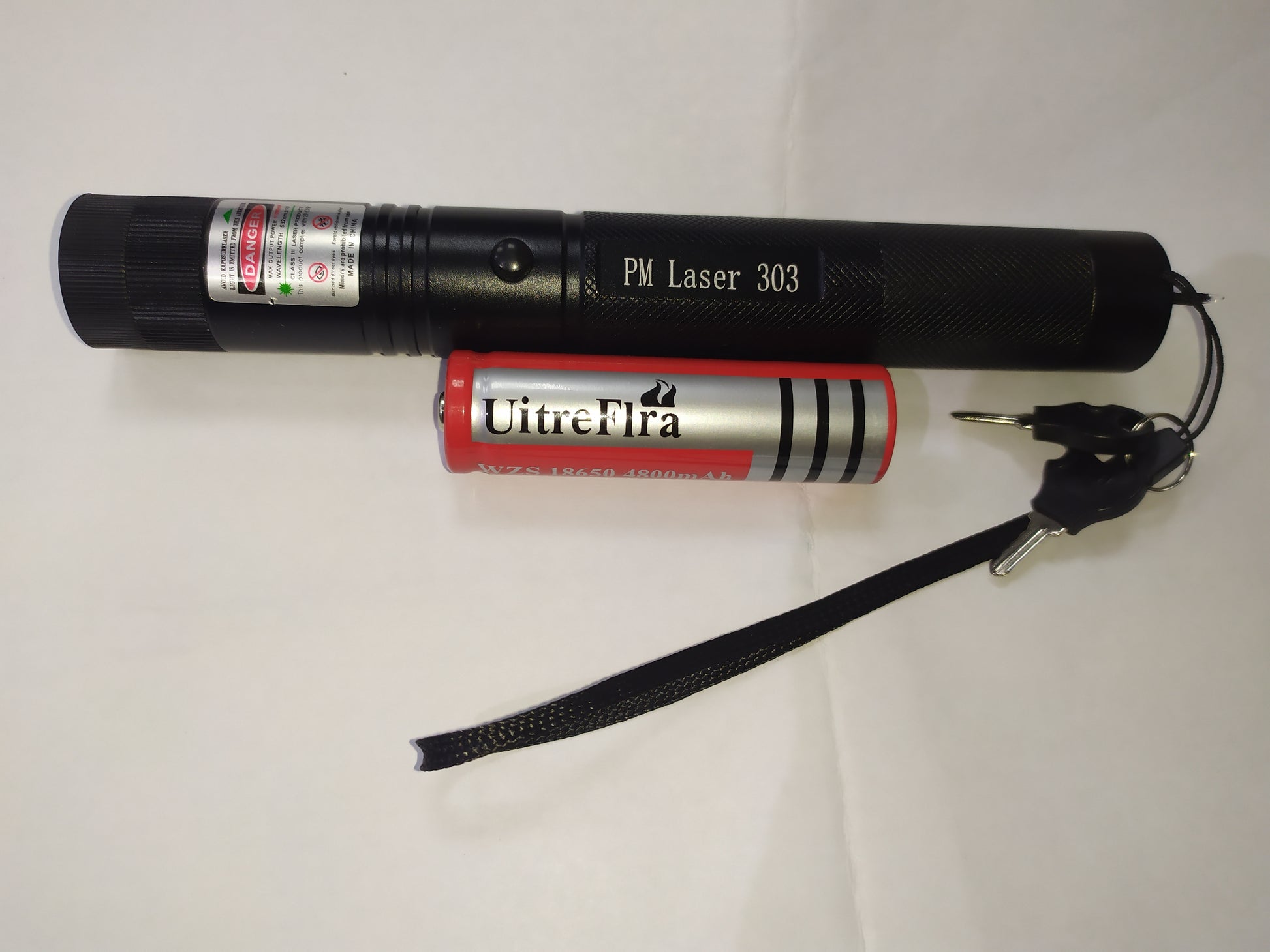 A medium sized laser pointer that emits green laser. Comes with a rechargeable lithium ion battery and charger for easy long term use.