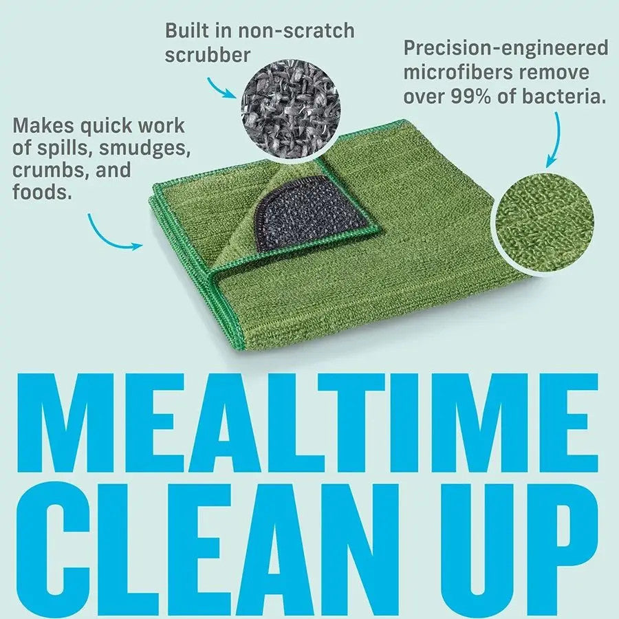 Rinse and dry the cloth between tasks. Toss in the laundry — not a landfill — to refresh.