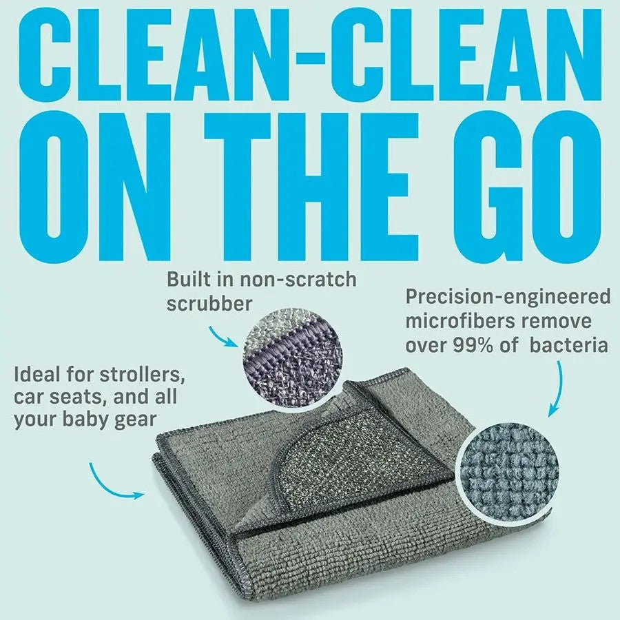 precision-engineered microfibers, the textured cleaning cloth quickly removes spit up, spills, fingerprints, grime, and over 99% of bacteria, using water alone.