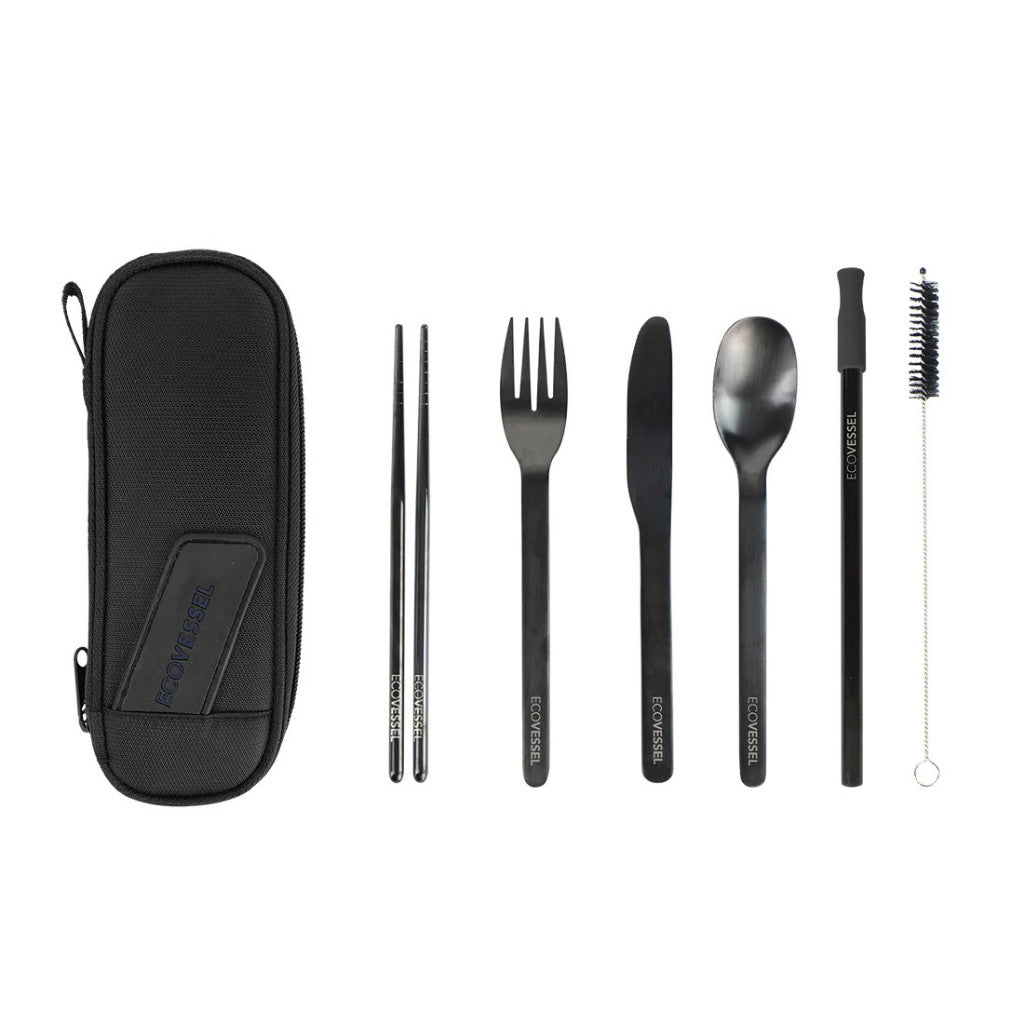 EcoVessel Wander Ware Steel Utensil Set - Cutlery (Spoon, Fork, Knife) , Chop Sticks, Straw, in Pouch
