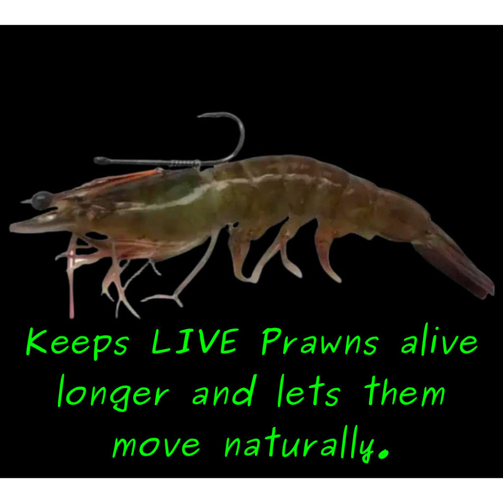 The problem always faced by anglers who use live prawns as bait is to keep them alive as long as possible after being impaled by the fishing hook. With these hooks, you avoid having to poke a hole through their body and instead use their shell to keep them to the hook, thereby giving you the edge of using live prawns over dead prawns for as long as possible and extending the investment in your live bait.